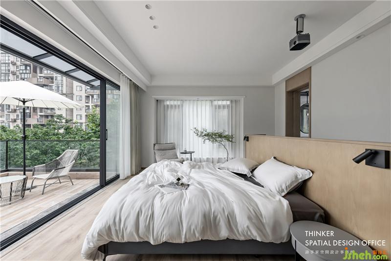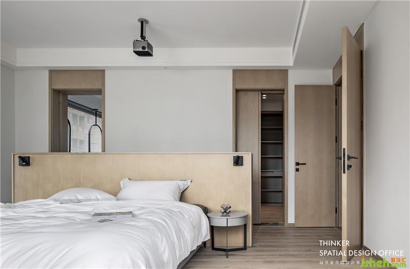 · 主臥與次臥合并,形成一套集臥室、衣帽間、衛(wèi)生間三個功能的大套房。白色+原木色的經典搭配,視覺上更加敞亮和溫馨。