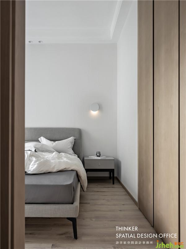 · 臥室灰白木的比例剛剛好,觀感柔和,并通過精心安置的照明與隱約可見的細節(jié),營造出安然于心的舒適空間。