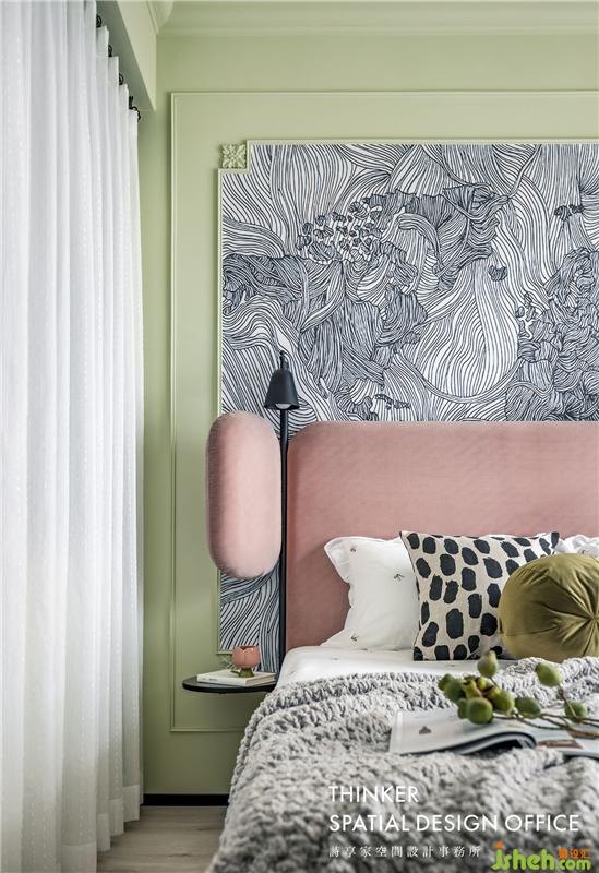 · 女孩性格溫柔的特點使她們天生對柔軟、可愛的東西更加喜愛,所以所以我們運用了珊瑚粉和牛油果綠等暖色調(diào)來裝飾。寧靜而自然,更顯清幽,有助于睡眠質(zhì)量的提升。