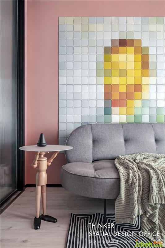 · 極具設(shè)計感的梵高像素畫、匹諾曹木偶茶幾 ,看似隨意的添置,實則為空間增添了不凡的藝術(shù)氣息,整體空間有趣不乏精致。
