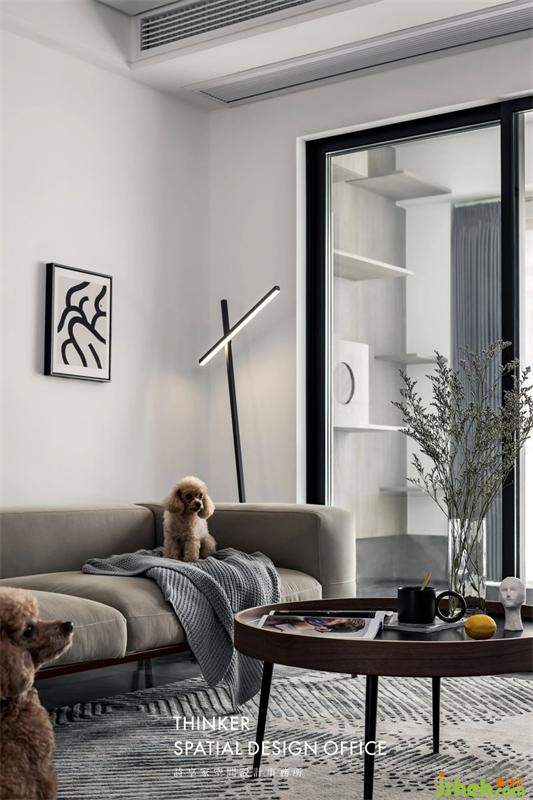 貓狗雙全是新時代幸福的象征,屋主早已把四只寵物當成了自己的家人,因此在很多細節(jié)上因為寵物而做了讓步,把整個陽臺作為他們的獨居空間,用隔板打造出專屬樂園。