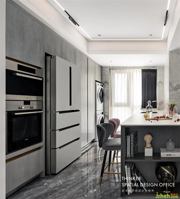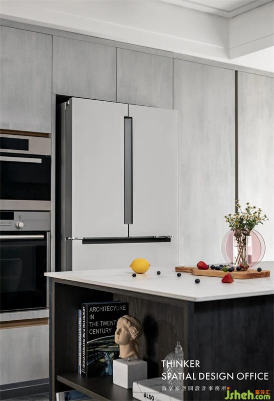 島臺(tái)側(cè)邊柜的巧妙設(shè)計(jì),打破了櫥柜設(shè)計(jì)的常規(guī),邊角空間不再是雞肋,將家居設(shè)計(jì)延升至生活所能觸碰的每一個(gè)細(xì)枝末節(jié)中,看似寂寂無(wú)聲,但若身居其間,當(dāng)知其中真意。