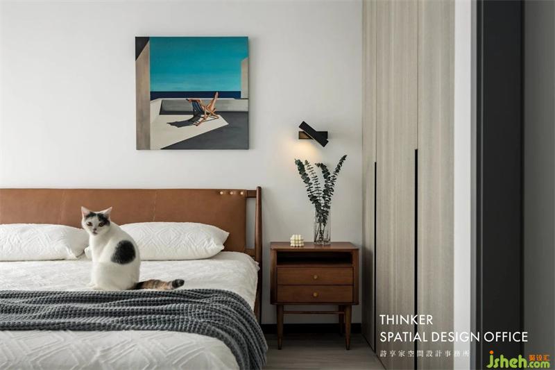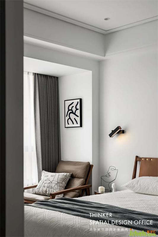 臥室以白色為主色調(diào),再加一點(diǎn)亮色點(diǎn)綴,使其更加充滿靈動(dòng)性。