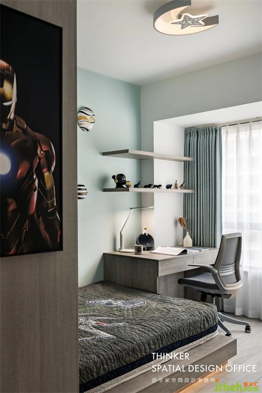 童年的夢(mèng),宛若星空,又藍(lán)又美。遙遠(yuǎn)未知的天空,對(duì)于充滿想象力的孩子來(lái)說(shuō),總是心生向往,藍(lán)色的墻面,有趣的裝飾,滿足孩子對(duì)天空的暢想,夢(mèng)便由此開(kāi)始了......將陽(yáng)臺(tái)納入室內(nèi),改成學(xué)習(xí)區(qū),給孩子一個(gè)可成長(zhǎng)的空間。