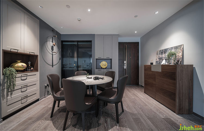 客廳吊頂為平頂,沒有造型,拉伸視覺層高,光線能夠均勻散落,有層次地利用光線,使空間氛圍更具格調(diào)。室內(nèi)設(shè)計師