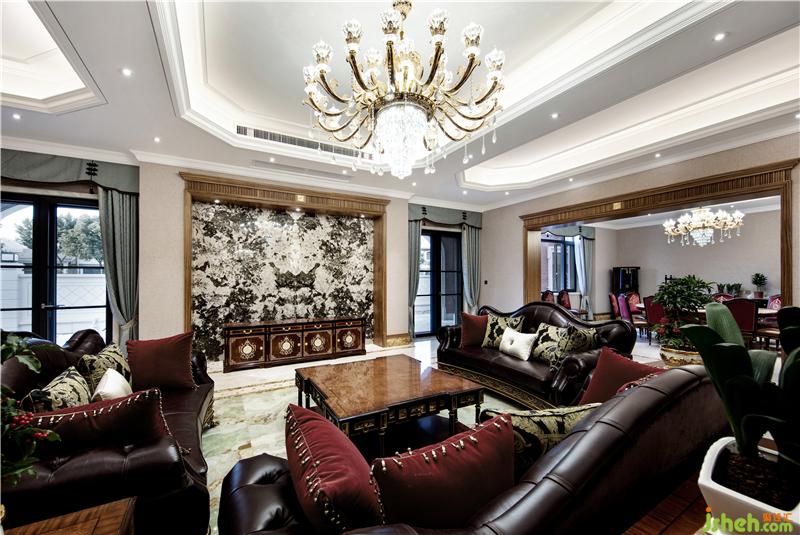 本案位于武漢湯遜湖畔,面積近千平方米,平面格局呈近乎嚴(yán)謹(jǐn)?shù)妮S線關(guān)系,業(yè)主希望擁有一個地道西式的宅子,而非市面泛濫的“偽歐”、“簡歐”,對于自幼在漢口老租界長大的設(shè)計師,這似乎不是問題。設(shè)計師為這座宅子設(shè)計了一個令人驚艷的中庭,中庭四周的護(hù)墻板采用木皮手工鑲嵌拼貼工藝,色調(diào)到位、尺寸精準(zhǔn),是設(shè)計師在自己的工坊親自為業(yè)主打造,貴氣而不浮夸,整個中庭面積不大,到玻璃天棚卻有著近18米的垂直高度,使之成為整棟房子的“精神堡壘”、生活場景的中心。