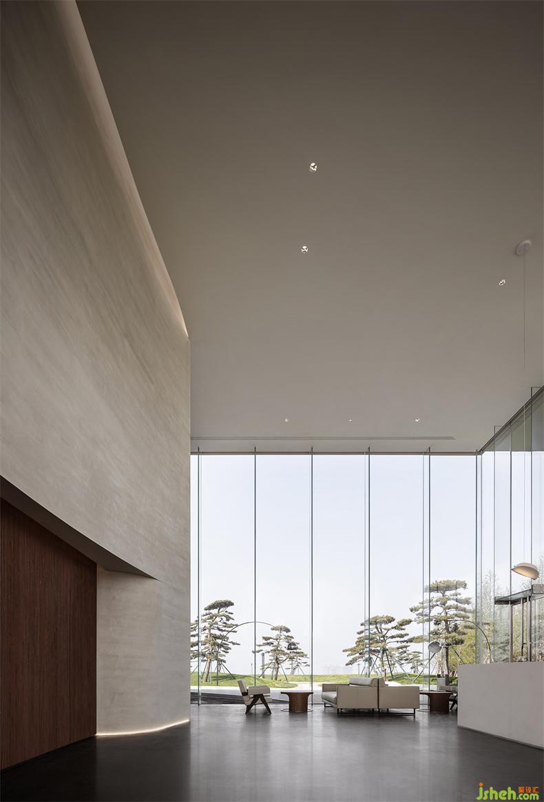 交疊垂直立面兩側(cè)留有臨窗路徑,售樓處設(shè)計(jì)逐漸現(xiàn)身的座位如航行時(shí)望見岸上星火點(diǎn)點(diǎn),旅程中目的地逐漸浮現(xiàn),漸強(qiáng)和聲引起人們對后方樂章的憧憬。