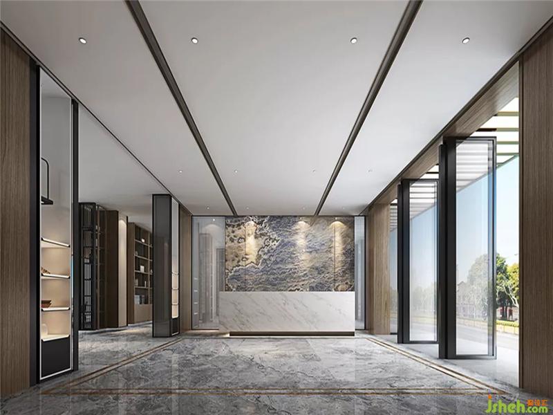 High-grade grey marble is used on the wall and floor of the reception area. Smallpox has no complicated shape, emphasizes the change of linear flow, and has a few smooth strokes, which gives beauty with the change of light and shadow.