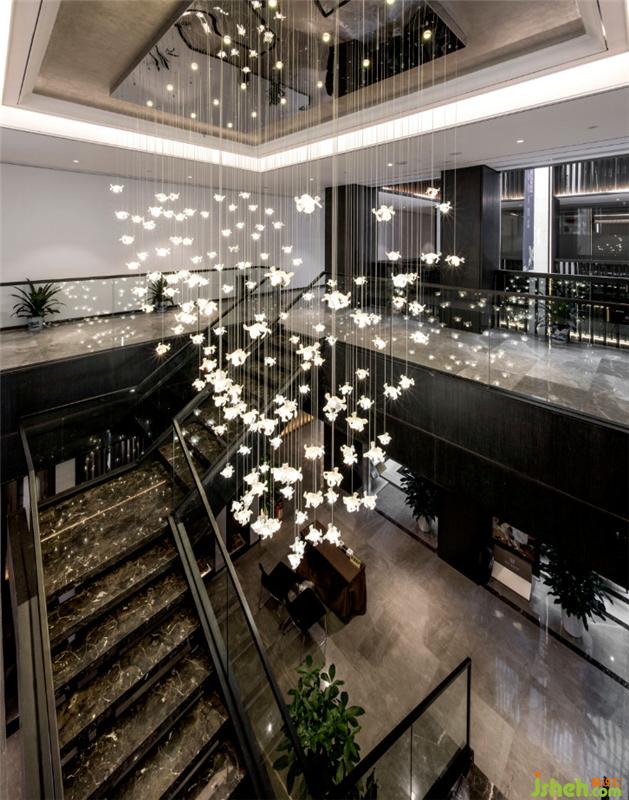 As Xu Zhimo's poems say: the wooden lotus chandelier scattered on the stairs, like a graceful girl dancing, adding some romantic atmosphere to the space, seemingly dull, but also infused with some spirituality. Bring together the vast space to achieve a blended environment!