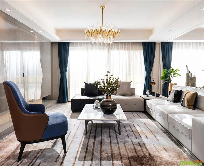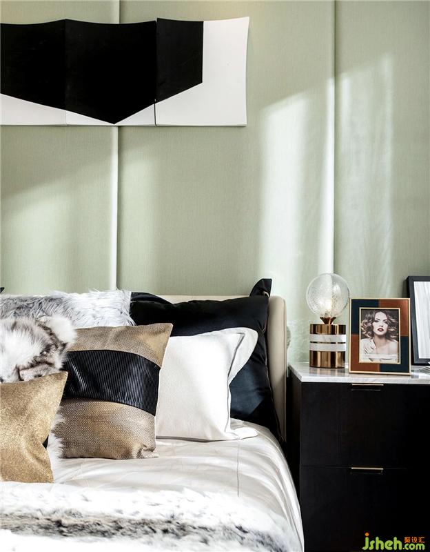 The dreamy blue tone is embellished with gold, and the light luxury of the small home is maximized. The sun shines through the translucent veils, giving the room a softer glow.
