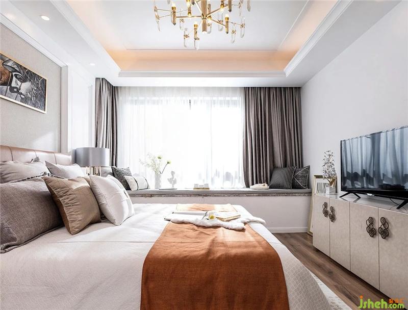 The lines of the bedroom tend to be low-key, affecting the elegant complex of immersive heart, adding orange to the jump, and the combination of crystal enhances the texture of the whole space, luxury and elegance, and the taste of fashion.