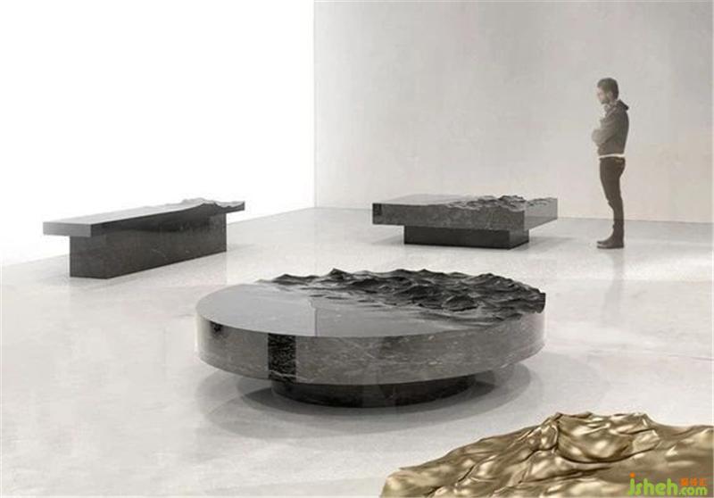 法國設(shè)計師Mathieu leaner的最新作品系列ocean memories(海洋記憶),液態(tài)大理石雕塑。展現(xiàn)出海洋的超現(xiàn)實(shí)形象,生動地模仿了被微風(fēng)輕輕吹拂產(chǎn)生漣漪的水面,處于固態(tài)與液態(tài)之間,仿佛凍結(jié)在變形過程中一般。人類智慧與自然之間的物感碰撞出的藝術(shù),動與靜強(qiáng)烈的表達(dá)與自然融合的神秘感。會所設(shè)計