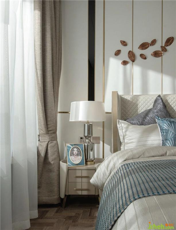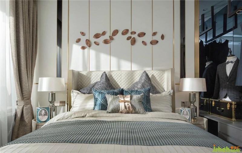淡雅的色彩搭配干練的線條,以及幾末精致的藍(lán)色與金屬色的巧妙混搭,讓空間在輕奢的外表之下更是大大豐富了空間層次,不動聲色地流露出靈魂中的優(yōu)雅。樣板房設(shè)計