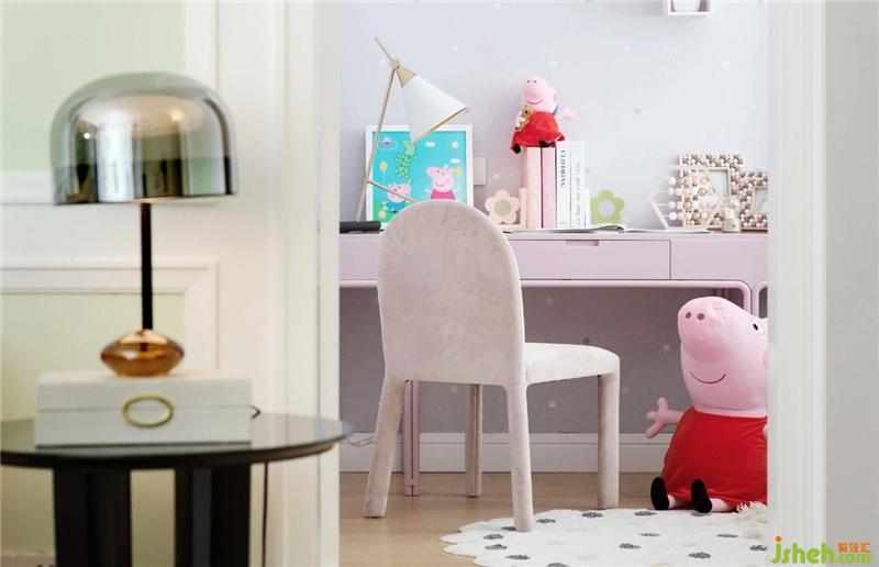 小孩房采用現(xiàn)在風(fēng)靡全國的動(dòng)畫片《小豬佩奇》作為主題,精致的金屬吊燈表現(xiàn)出整個(gè)空間的藝術(shù)氛圍,7歲的小女孩對動(dòng)畫片充滿了無限的熱愛,用掛畫和飾品更為凸顯出小豬佩奇的主題性,也讓整個(gè)空間更具生活氣息。