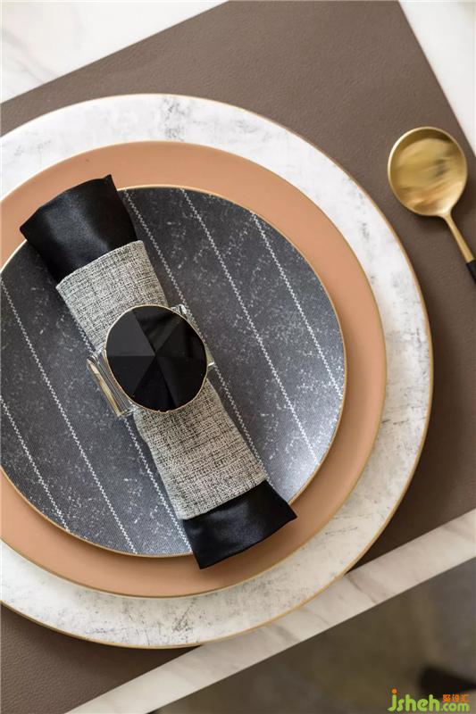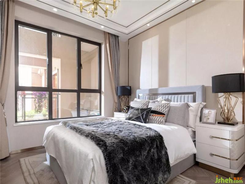 The master bedroom continues the color tone of the overall space. The earth brown is embellished with metallic colors, and it seems subtle and quiet in the master bedroom space. The scenery outside the window is just right. On the treetops, the birds sing, and the tranquility of the mood is good, creating a warm and comfortable feeling at home.