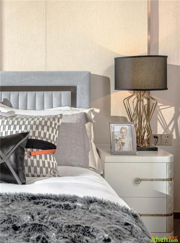 客臥以沉穩(wěn)的灰色作為底色,并采用了一些原色呈現(xiàn)房間的舒適度,整潔的空間強(qiáng)調(diào)舒適的睡眠功能。點(diǎn)綴些許浮華,余下便是過(guò)盡千帆后的釋然與從容。