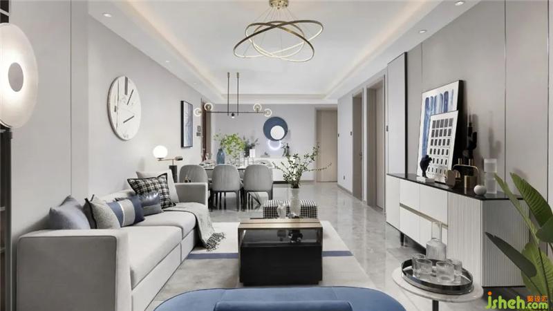 117 戶型針對(duì)的是40歲左右的客戶群體,定位為冷色調(diào)的精英家庭,現(xiàn)代輕奢風(fēng)格,強(qiáng)調(diào)雅居生活。樣板房設(shè)計(jì)