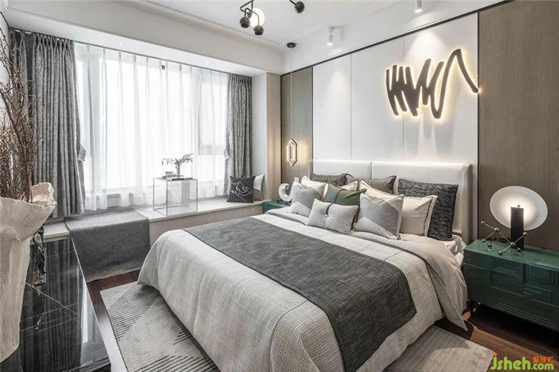 萬(wàn)事萬(wàn)物皆為自然而造,綠色在這個(gè)家中承載著如大樹(shù)般的凝聚力,緊緊地將每個(gè)空間連接在一起。讓綠意涌動(dòng)在每一個(gè)細(xì)節(jié),軟裝與都市綠洲的理念才得以真正地交織交融。主臥以高品質(zhì)的床品呈現(xiàn)生活的精致感,家里的每一個(gè)人都是空間的一部分,在家放松地做自己,那便是屬于自己內(nèi)心安適的房子。