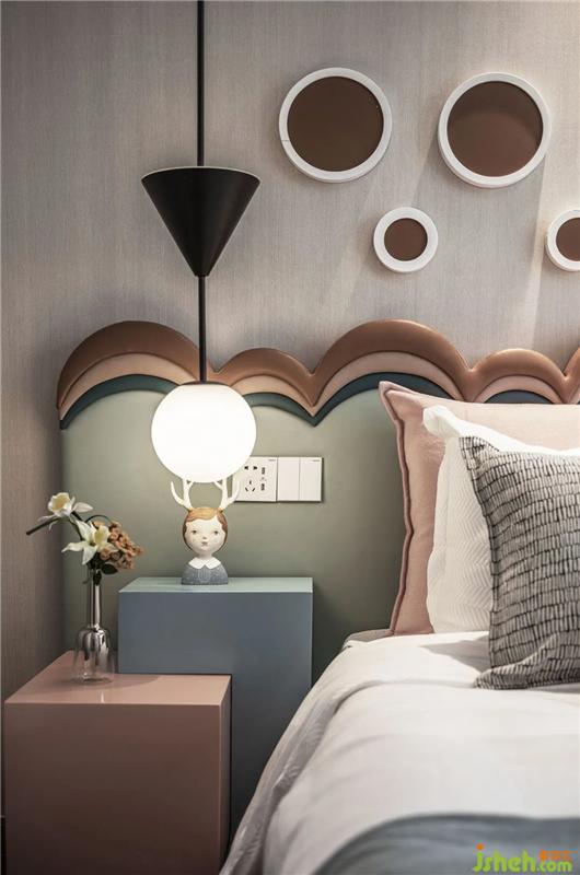 Illustrations, parrot dolls, and book books are displayed in an orderly manner in the children's room space. The design depicts the children's life scene and spiritual world in detail, supplemented by bright color blocks and lines, and the pure and simple daily setting is here.