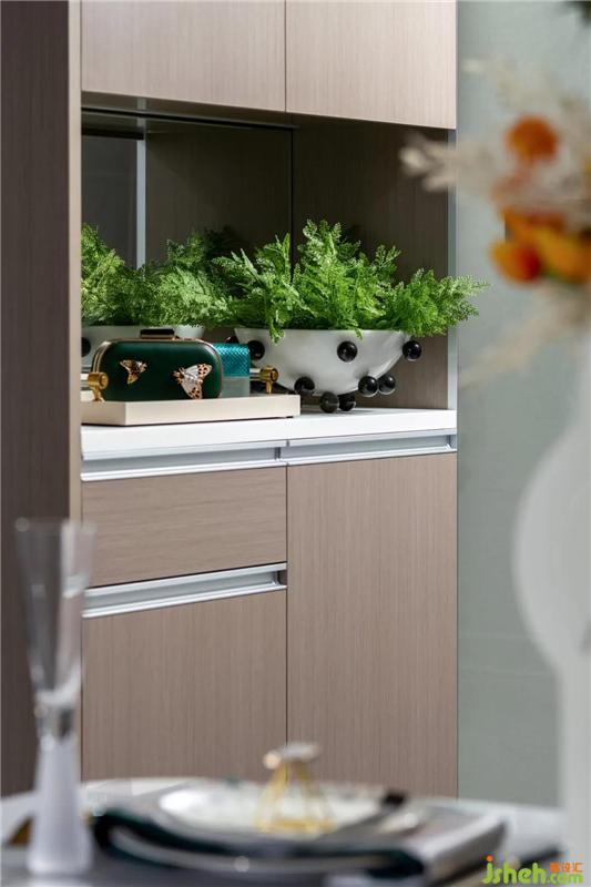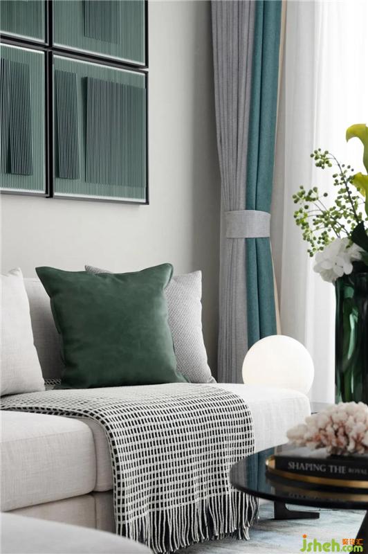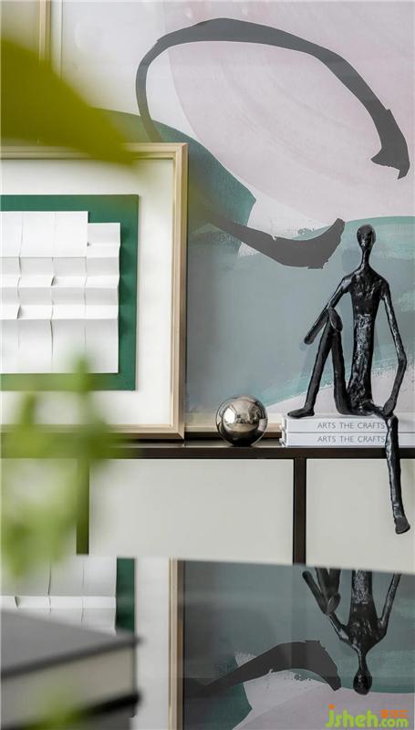 電影《五十度灰》中的空間設(shè)計,也運用了這種構(gòu)圖手法,干凈利落的線條,恰到好處地體現(xiàn)了空間層次,并帶來一種縱深感,將優(yōu)雅與沉靜的意趣延伸開來。與五十度灰的高冷范不同,空間以祖母綠為跳躍色,增強了一些靈動的飾品,它們散發(fā)著時尚和生機,讓空間妙趣橫生,繾綣曼妙時光。樹美室內(nèi)設(shè)計師們選用了實用的隱藏式收納柜,讓空間保持簡潔、易于打理,并通過點線面的立體構(gòu)圖,讓空間感更加開闊,給人以領(lǐng)袖的視野。