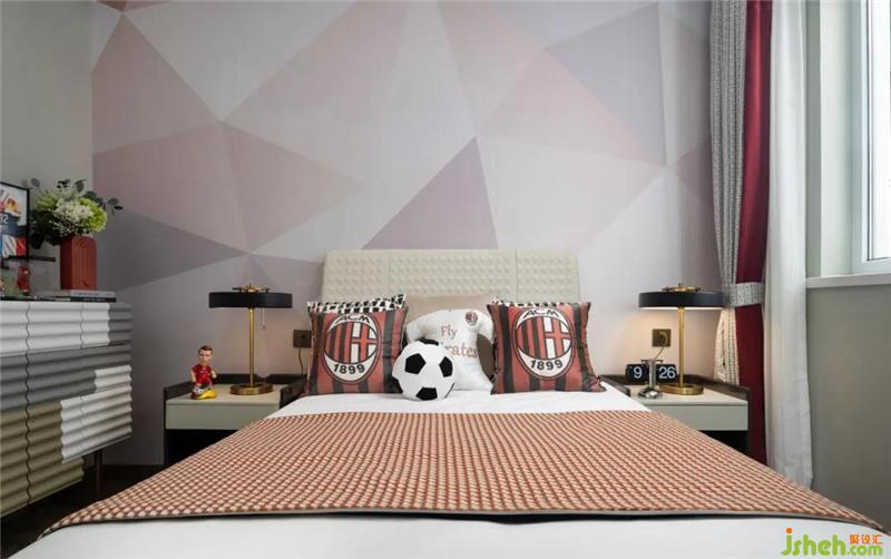 智慧、生命力、想象,男孩房以《AC米蘭足球俱樂部》的足球符號為主題,激發(fā)男孩對運動、足球的熱愛以及好奇心。