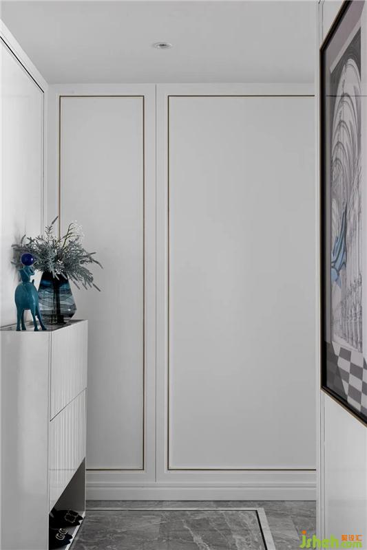 空間延續(xù)了硬裝的暖灰色,現(xiàn)代簡約白色的護(hù)墻板,室內(nèi)設(shè)計(jì)師選擇了灰色大理石地面和米色電視背景墻,讓整個空間更加優(yōu)雅、硬朗、大氣,營造現(xiàn)代奢華感。