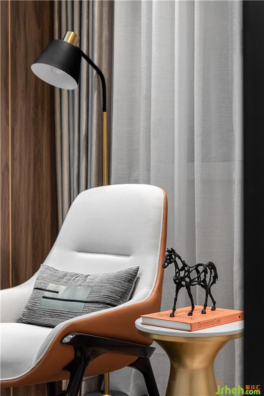 書房以女主服裝設計師職業(yè)為切入點,樣板房設計在營造不凡藝術格調的基礎上,為她建立一個相對個人化的、豐盈的精神世界。在書房里,聞著書香,探索精神文化的實質,心靈的回歸。