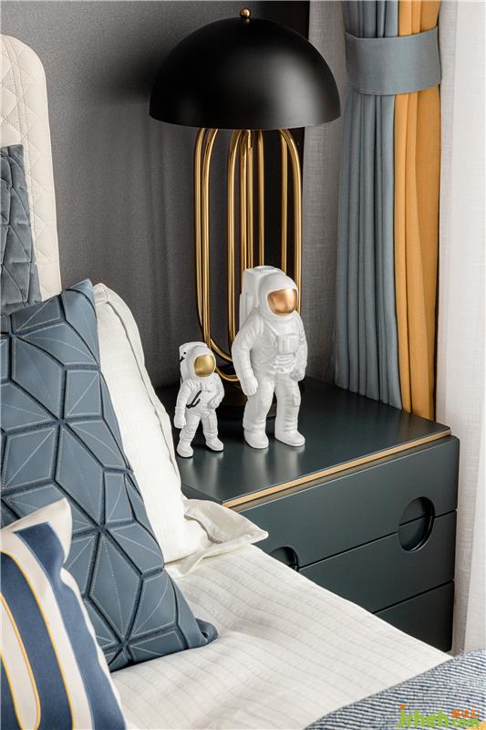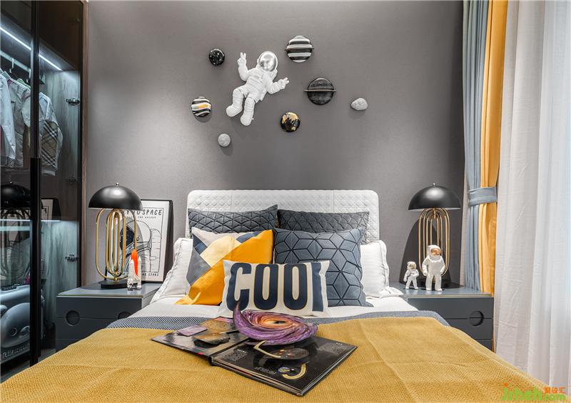兒童房營造遨游太空,穿梭于星際間捕捉夢影的場景。想象銀河里藏匿著數(shù)億光年的秘密,群星璀璨的令人著迷神往。