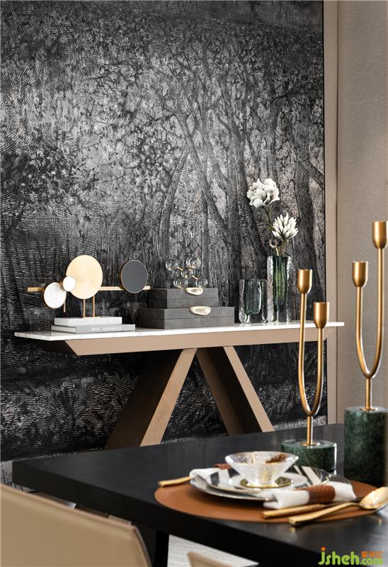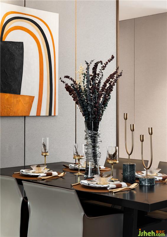對于餐廳,我們從“城市森林”的概念里提取設(shè)計(jì)元素,將精致又特別的裝飾擺盤、酒杯,相互交錯(cuò),仿佛置身于熱帶雨林之中,而古希臘神話中的靈蛇圖形,也是歷史文化的經(jīng)典符號。