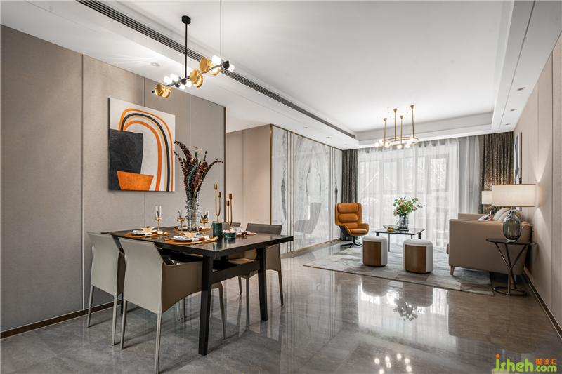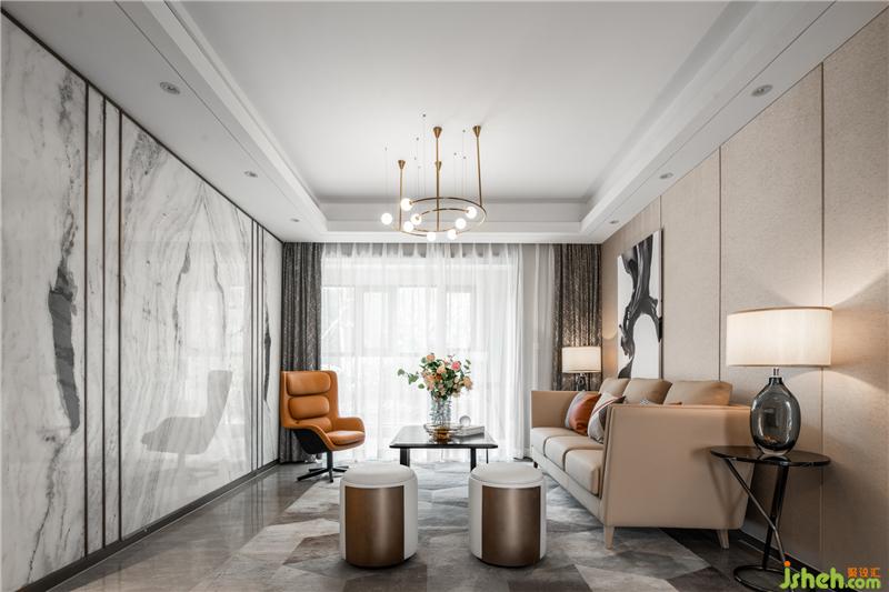 牽掛如山,還有一水之隔,搖晃思念,滴答滴答,相聚終有時(shí)??臻g以黑白灰為主色調(diào)、金色、咖色與藍(lán)色點(diǎn)綴。運(yùn)用高級布藝、大理石、優(yōu)質(zhì)皮革以及金屬材質(zhì)。以黑白灰為主色調(diào),咖色作為點(diǎn)綴色的現(xiàn)代風(fēng)格布置下使人有一種溫馨的感覺。