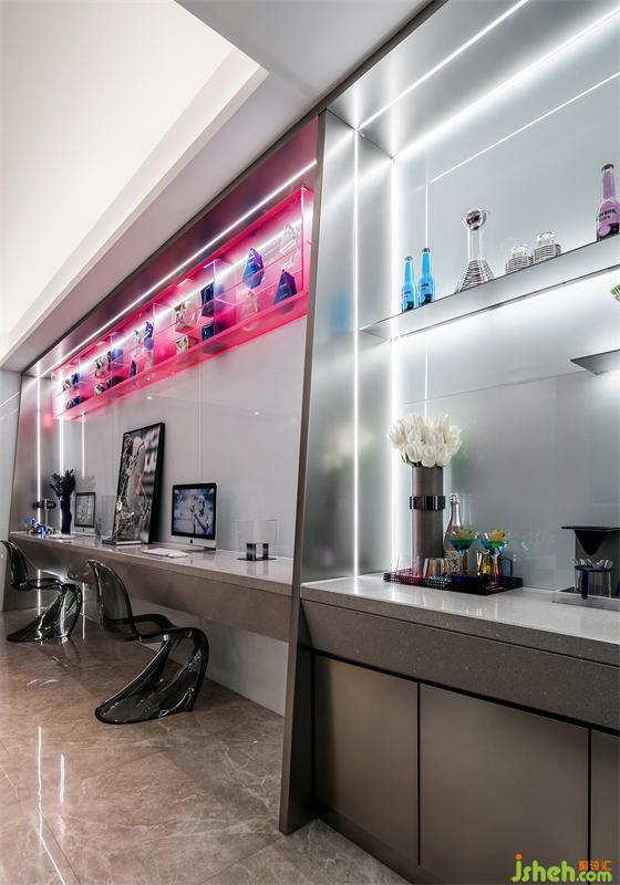 辦公區(qū)配以造型別致的桌椅,打破了空間的單調(diào),展示區(qū)墻面機器手臂掛飾以及大屏電腦配置為來訪者提供互動體驗,感受科技的神秘力量,以此致敬科技的發(fā)展,表達(dá)對科技探索的渴望,引領(lǐng)著人們在舊范式與新空間,未來與現(xiàn)實,虛與實,動與靜中來回穿梭,營造一個年輕,時尚,個性又充滿科技感的辦公空間。