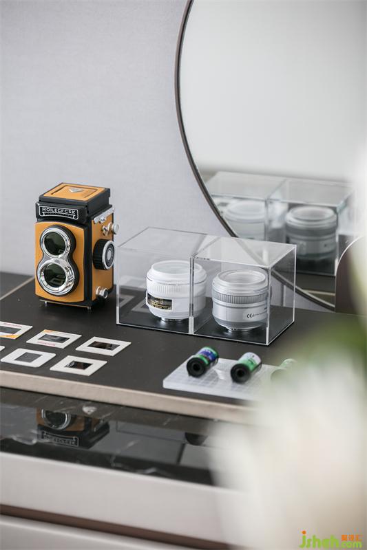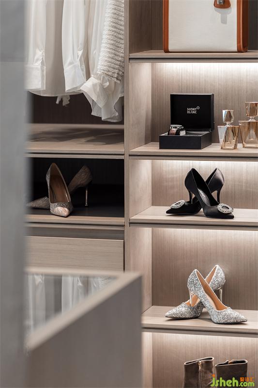 開敞式的衣帽間,女主人喜歡香奈兒的干練隨性,而男主人則欣賞BOSS范兒的整齊筆挺,他在每個紀念日都會買一塊手表作為紀念品,記錄那時那刻的感動與生活的模樣。