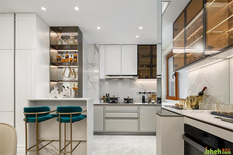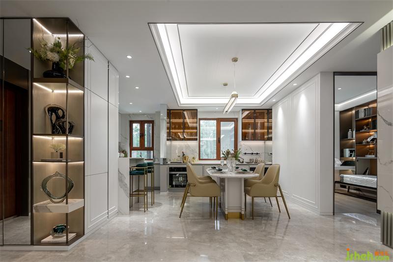 樣板間設(shè)計(jì)客餐廳相連,餐廳的空間較為狹小,所以我們選用了較為簡單且有品質(zhì)感的餐桌與餐椅。每一個(gè)陽光明媚的下午,與家人享用著中西餐的美妙幸福時(shí)刻,新鮮美味的香氣環(huán)繞著餐廳和廚房空間,這就是家的味道。