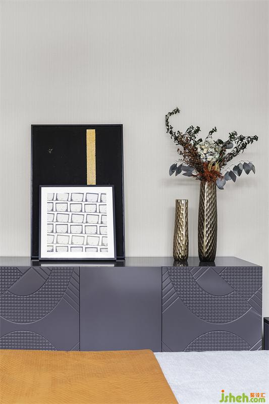 灰色是沉穩(wěn)考究的態(tài)度,也是雅致柔和的意向,床品活力橙的出現(xiàn)讓空間更加感覺舒適與溫暖。西安樣板間設(shè)計在“無往不復(fù)的天地之際”空間意識里,讓身處臥室中的人獲得精神與心理上的放松,享受當(dāng)下獨與天地往來的適意曠達(dá)。