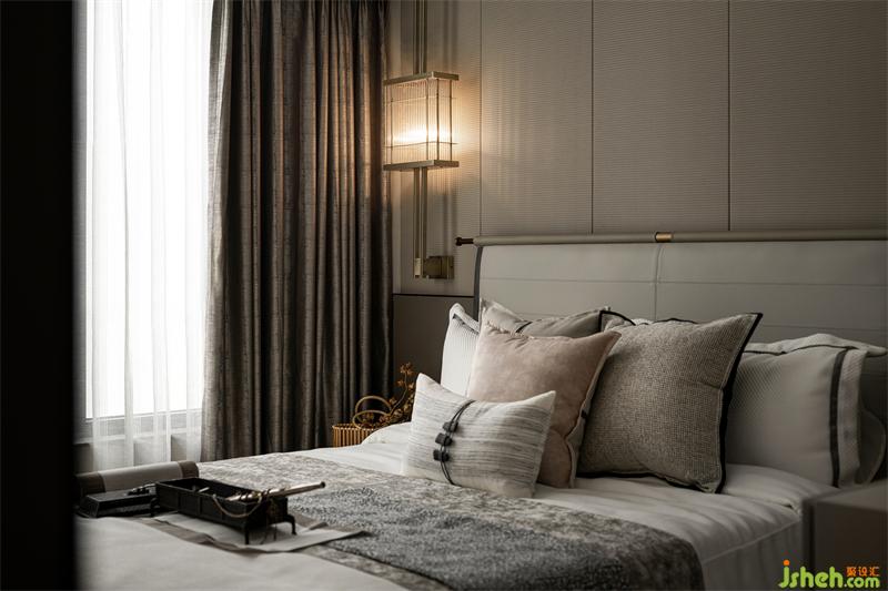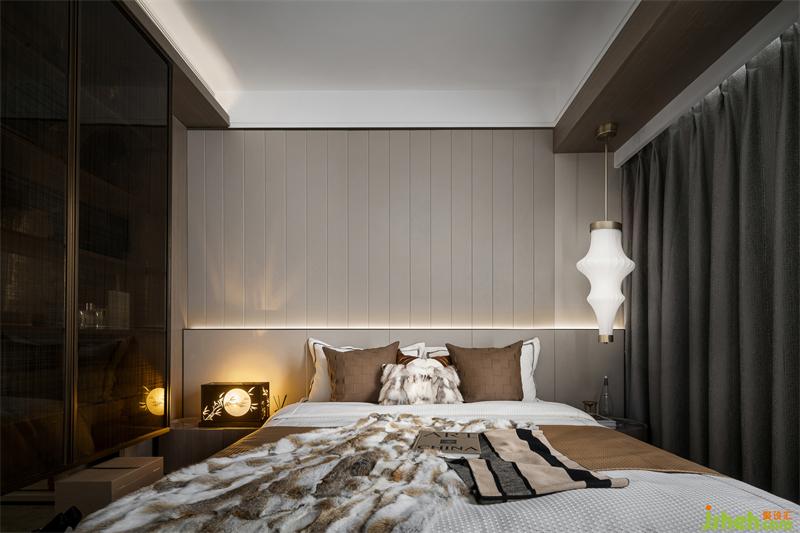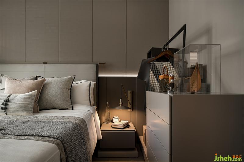 樣板間設(shè)計(jì)考慮到空間的整體及硬軟一體性,在選材上我們高度結(jié)合硬裝,攝入酒店處理手法,將次臥的品質(zhì)感最大程度的提升並融入生活氣息。
