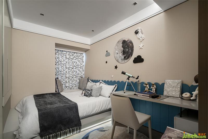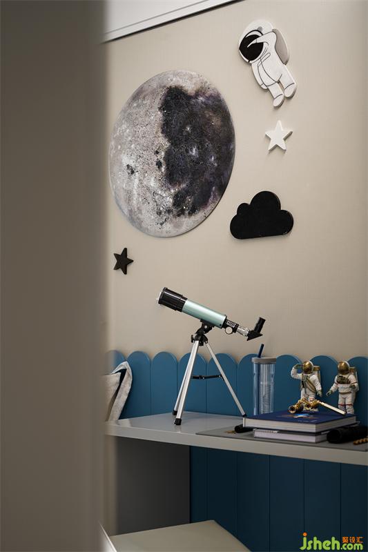 當(dāng)遨遊太空的夢(mèng)想成為現(xiàn)實(shí)......兒童房給夠孩童幻想的餘地,樣板間設(shè)計(jì)也給予他們承載人文的氛圍,動(dòng)靜結(jié)合,細(xì)膩而富於生活化的配飾陳設(shè),飽滿了整個(gè)房間。