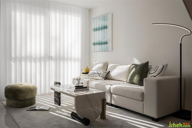 充滿陽光和清風(fēng)的早晨,開啟美妙的一天,起身開窗,與陽光和清風(fēng)撞了個滿懷。溫暖的米白色融入清新的草綠色,像一杯抹茶拿鐵,清新味道中融入了幾絲奶香與甜味,灑入室內(nèi)的陽光,留存一室溫暖。小小的一方空間成為主人公難得放松與寧靜的一隅天地,享受著溫暖的愜意,洗去一身煩惱。