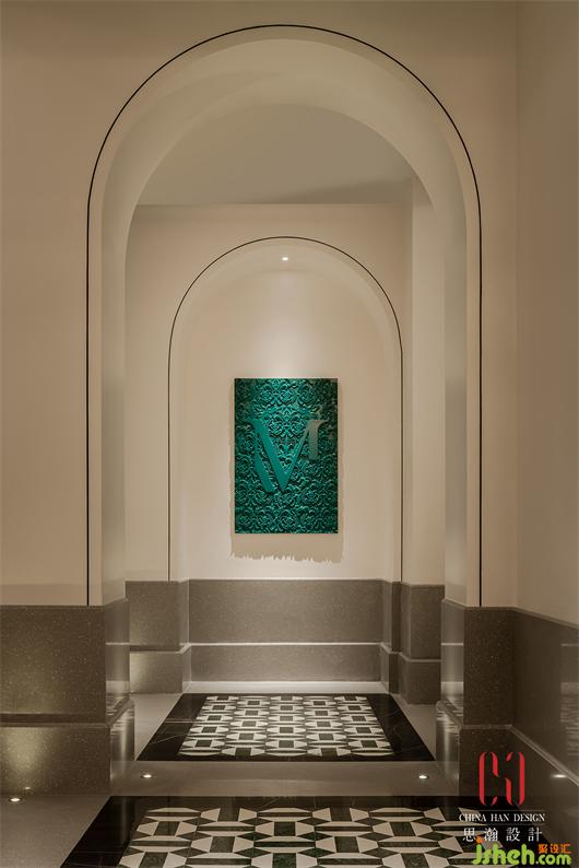 拾級而上,站在分叉路口,左側與右側的大門,該選擇哪一個?迎接而來的,將會是怎樣的奇遇?國際酒店設計透過端景處的玻璃隔斷,室內柔和的音樂,場景與人撲面而來。