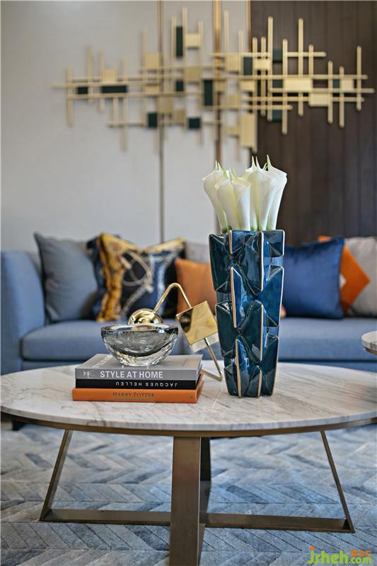 對于不同的居住者,設計師會賦予空間不同的主題,不變的是一脈相承的藝術感和以誠相待的生活氛圍。主色調為霧霾藍及愛馬仕橙,在視覺上穩(wěn)定而不突兀,整體空間內斂而莊重。