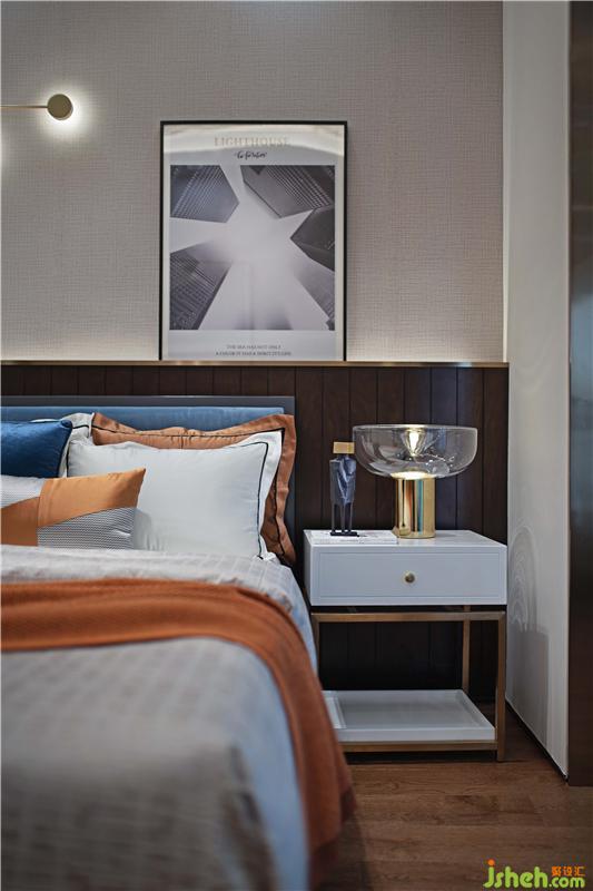 相較于別致典雅的主臥,次臥力圖在舒適與藝術(shù)之間達到共鳴。愛馬仕橙的色調(diào)顯奢顯貴,充滿藝術(shù)氣息的床頭燈稍作點綴,提升整個空間的裝飾感。270度觀景陽臺擺放動感單車,欣賞風(fēng)景與鍛煉身體兩者兼得。