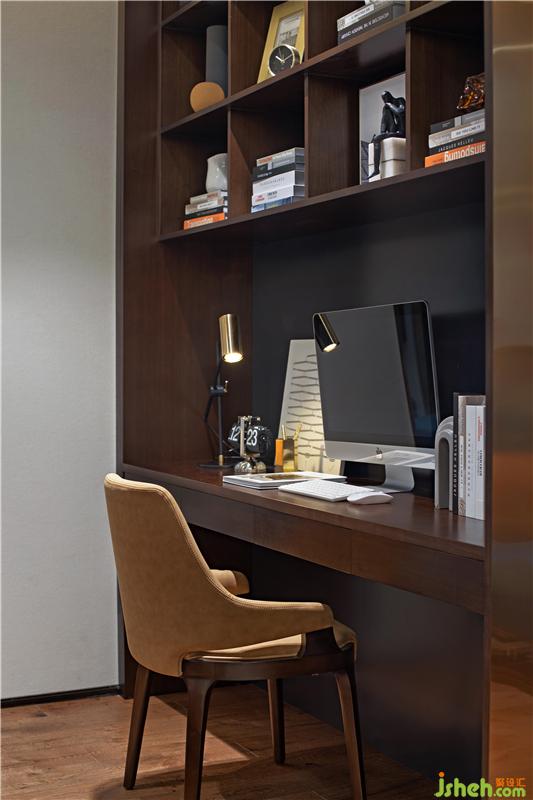 設(shè)計師在書房的擺放格局上別出心裁,留一個角落給沙發(fā),在書桌前看書有種嚴(yán)肅感,但在沙發(fā)上卻是有種放松和享受的感覺。