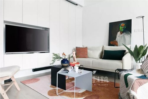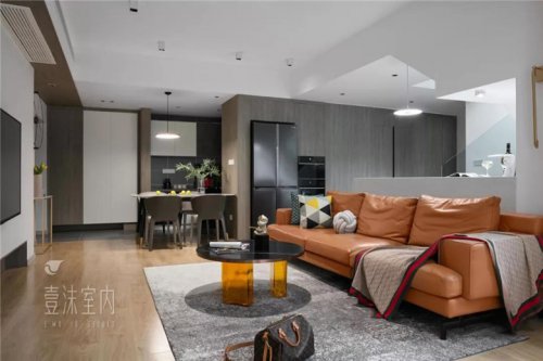 客廳的電視墻做了高低錯落的設(shè)計在立面構(gòu)圖上美觀大方,大理石和木飾面材質(zhì)的綜合運用給視覺帶來了巨大的沖擊力。電視柜的背面是親子空間,坐在大理石電視柜背面的吧臺上即可以照顧孩子也可以跟客廳的人有所的交流,室內(nèi)設(shè)計師這樣的設(shè)計給業(yè)主的生活帶來了極大的便利性。