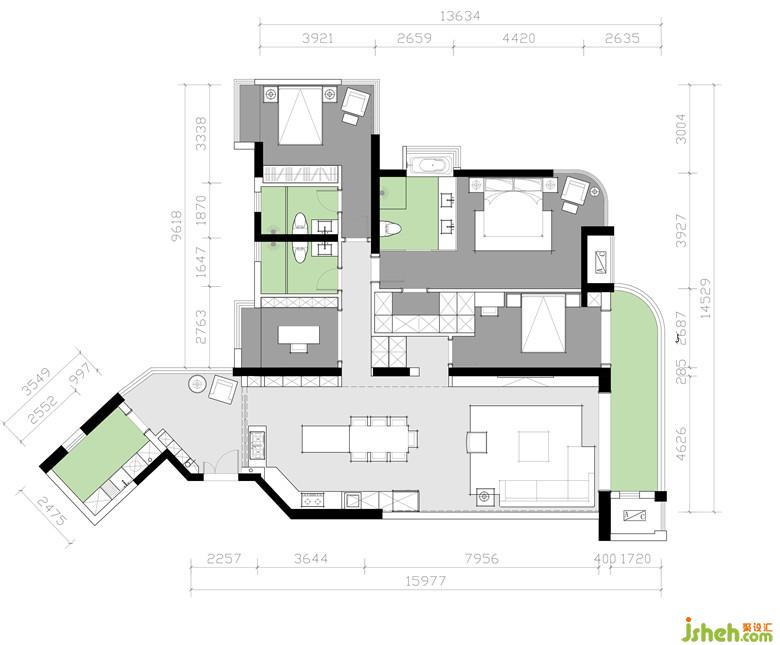 業(yè)主是三口之家,同父母一同居住,喜歡簡(jiǎn)單略帶個(gè)性的空間布局,想要開(kāi)闊的空間不喜歡廚房的布局沒(méi)有采光和通風(fēng),要大量的儲(chǔ)物空間以及可以健身娛樂(lè)的休閑區(qū)域。