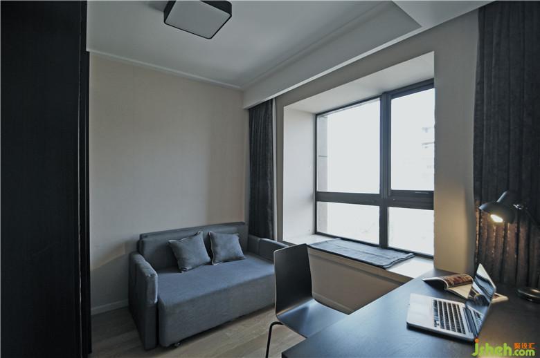 小臥室被用于做書(shū)房讓業(yè)主能在相對(duì)獨(dú)立的環(huán)境中辦公看書(shū)。通過(guò)書(shū)房沙發(fā)床的改變,同樣能夠滿(mǎn)足訪客來(lái)訪的居住需求。這樣既避免了床這樣的大家具在小空間中產(chǎn)生的占據(jù)感,同樣增加了空間的多樣性。