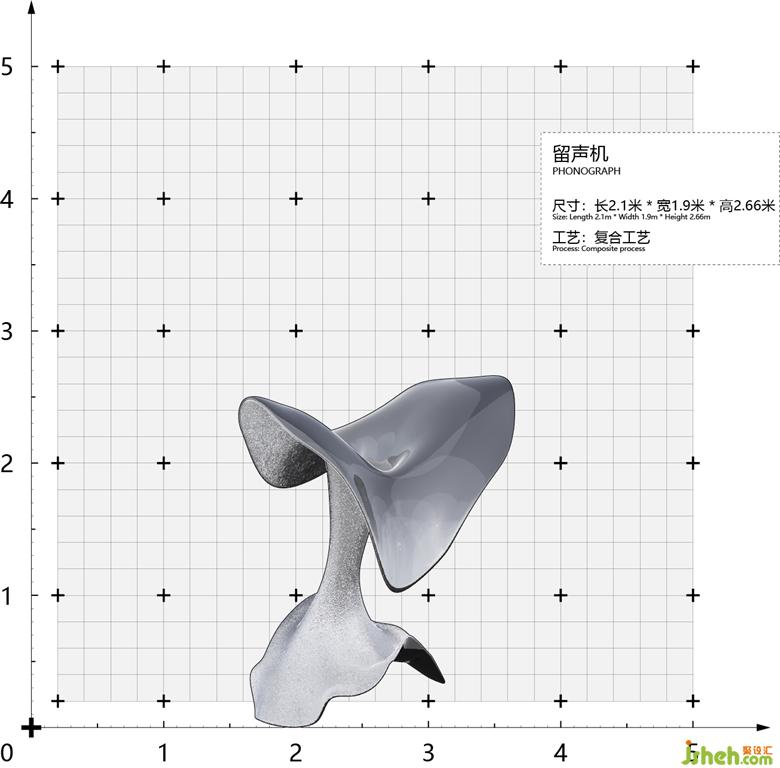 留聲機,記錄聲音也播放聲音。傳統(tǒng)留聲機的形象通常帶有一個巨大的喇叭狀揚聲器,我們將其記錄并回放的能力作為意象與喇叭的造型結(jié)合在一起,打造了一個夢境的記錄者裝置,將這次不可思議的游覽默默印刻收藏下來。