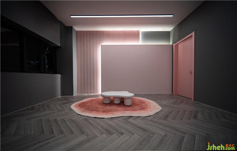 The lighting and wall materials used in the whole space are customized acrylic, printed in a pink gradient. In the limited cost, combined with pink leather anti-collision soft bag, to enclose a basic unit space. The rich modules in different positions have special lap treatment, the purpose is to make the monotonous envelope become rich and affinity. Use the SIMPLE sense of material to acme, surround a virtual and real contrast is clear, transparent and sturdy and durable space.