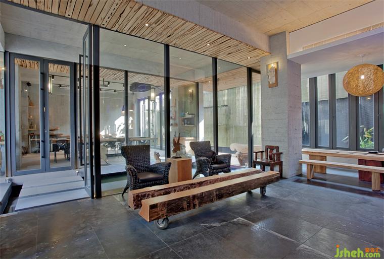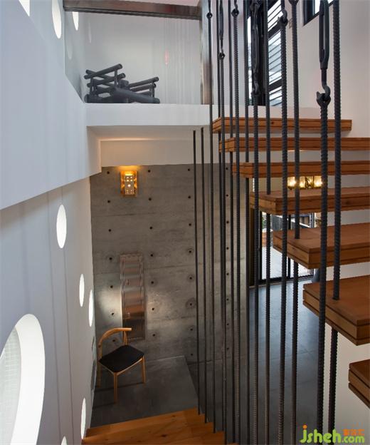 隨著樓層的拉升,從公領(lǐng)域轉(zhuǎn)入私領(lǐng)域設(shè)計,空間線條也從粗獷漸次轉(zhuǎn)趨細(xì)致,客房天花保留局部板模元素,床座與腰板皆采香杉立體切割,獨棟別墅設(shè)計并對應(yīng)下窄上寬的屋廓線條,微傾的床頭角度與直角切割的衛(wèi)浴墻面,形塑令人玩味的線條趣味。兩個男孩共享的孩房中運用大圖輸出插畫家作品,及大面白色烤漆玻璃,打造自由涂鴉的童趣空間。