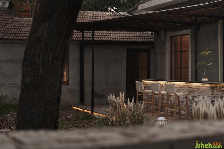 由于項(xiàng)目周邊多為居民小區(qū)且入口較為隱蔽,因此需要充分利用舊廠房院子的空間,增加休閑區(qū)域激發(fā)場(chǎng)地活力。藝術(shù)餐廳設(shè)計(jì)除了放松休息空間,設(shè)計(jì)師還增加了吧臺(tái)設(shè)計(jì),使庭院有了具體的消費(fèi)場(chǎng)景,為餐廳未來發(fā)展提供了更多的可能性。