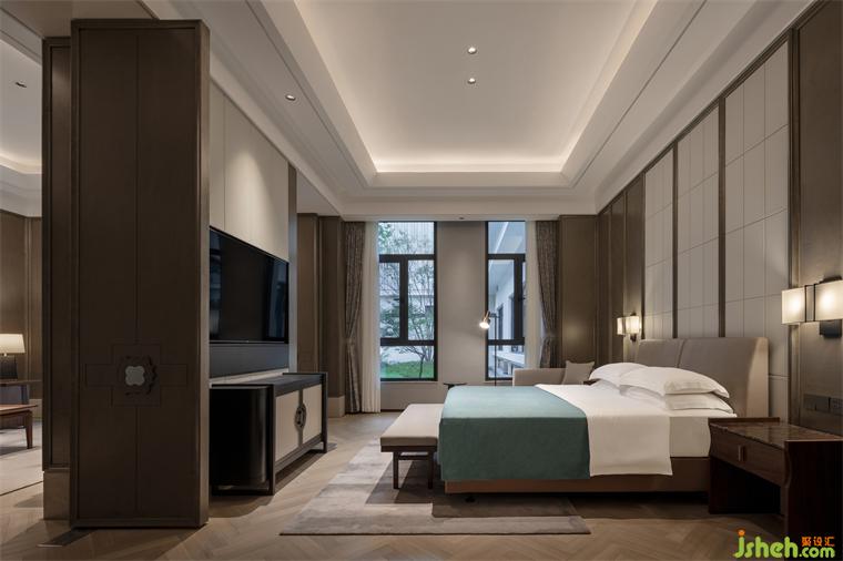 第二個體塊則是利用原有建筑空地新增的功能區(qū),用于會議接待,包含一個可容納440人的多功能廳、1個會議室、2個接待室以及帶有地域文化符號的多功能包間,整個空間莊嚴(yán)典雅,適合政務(wù)接待等多種活動需求。設(shè)計(jì)師還在此空間內(nèi)增設(shè)了兩個小庭院,疏密得益、眼前有景,賓館設(shè)計(jì)從而打破大體量空間所帶來的沉悶感。兩個體塊因四個庭院起承轉(zhuǎn)合形成回廊得以串聯(lián),實(shí)現(xiàn)了內(nèi)部空間的有序性。