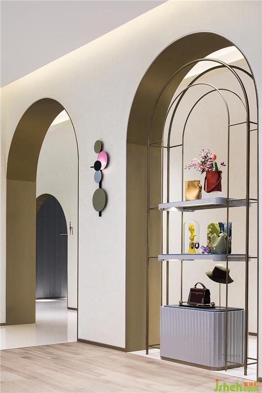 空間中多個精美的展架上陳列的,是與品牌OOAK的跨界合作的成果。金屬線條勾勒出一系列展架以充滿當代活力的買手店之姿模擬購物體驗,通過這種表達生活的方式,完成從物到人的回歸,培養(yǎng)客戶歸屬感。
